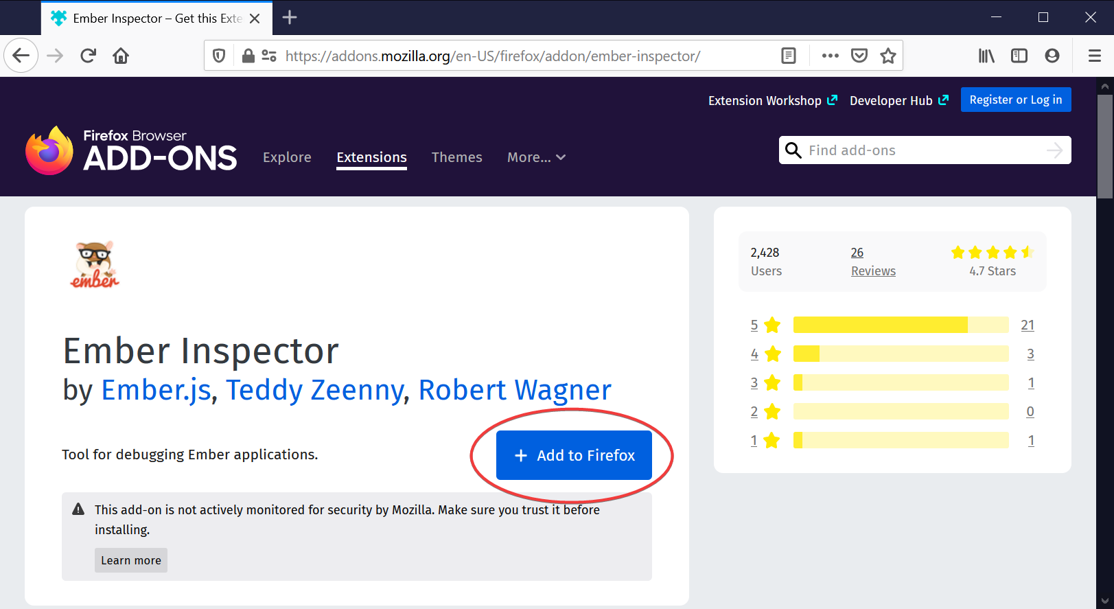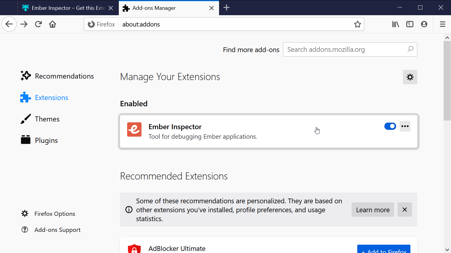 To enable the Ember favicon to show up in the URL bar whenever you are visiting a site that uses Ember visit about:addons.